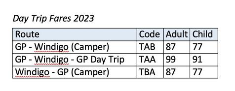 $120.50 Day trip passenger over and back in the same day. ***NOT A CAMPER RATE***
